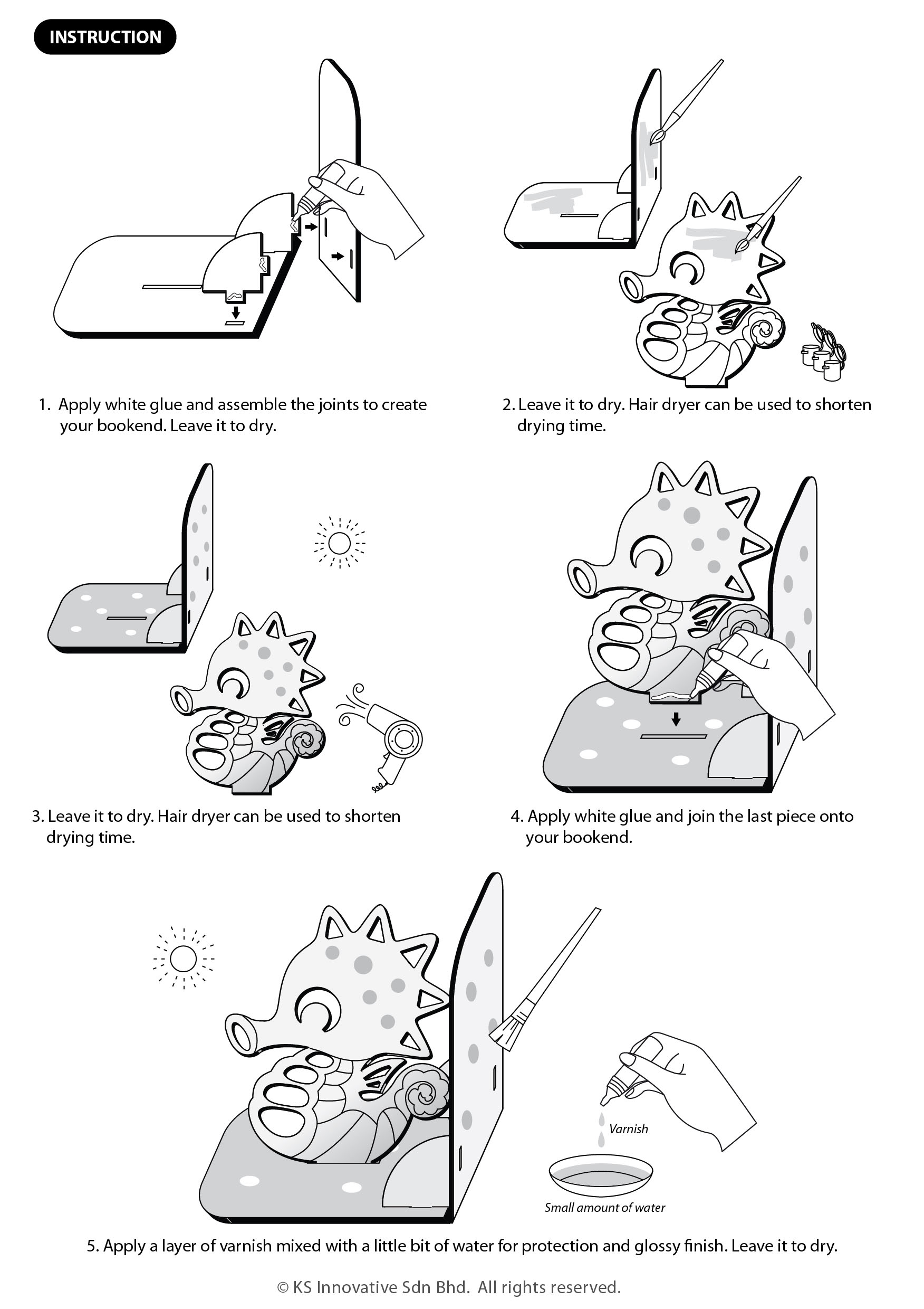 Encourage reading by building your own Dainty Deer book end! Perfect as a mantelpiece decoration too. The DIY bookend is laser drawn for kids' easy painting process, afterwhich they assemble with the connective joints and insert the character piece. Sleek it up with a glossy varnish finish! Set it up against books.