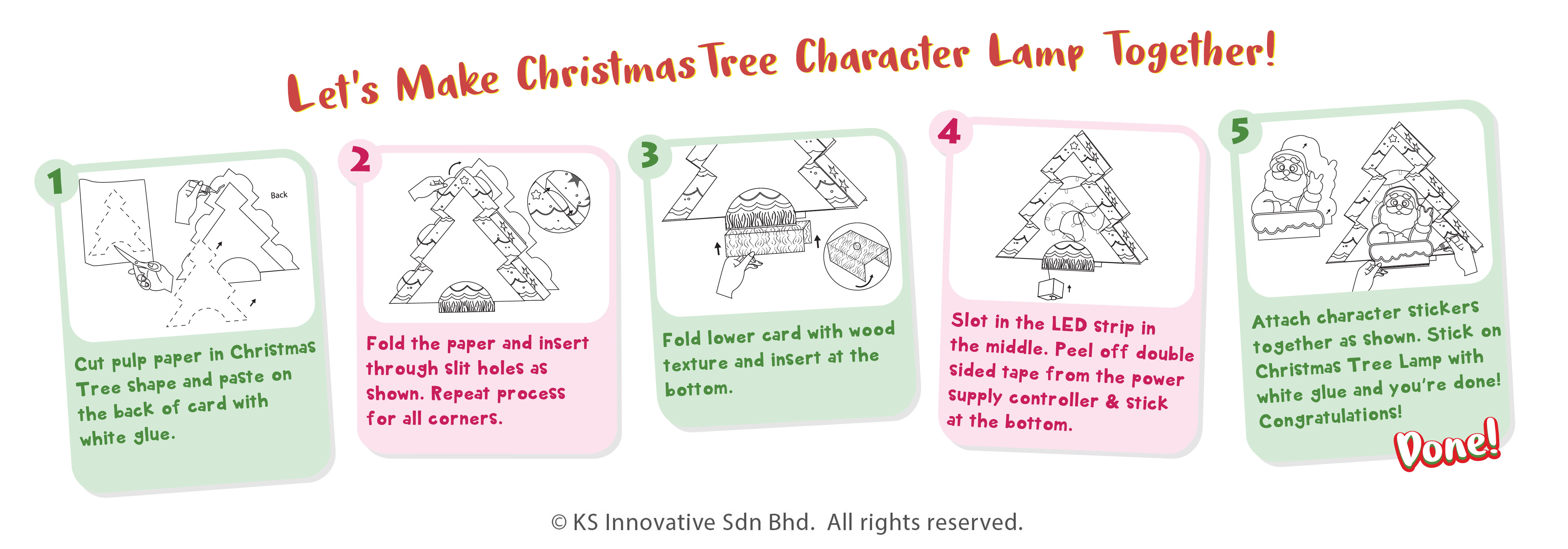 Bling up your space this Christmas with our cute Christmas Tree Character Lamp! The lamp has two sides with different felt Christmas character! Each kit comes in either Set A - Santa and Rudolph the Reindeer, or Set B - Snowman and Penguin. Kids will love putting together and creating this craft with LED that twinkles in multiple colours!