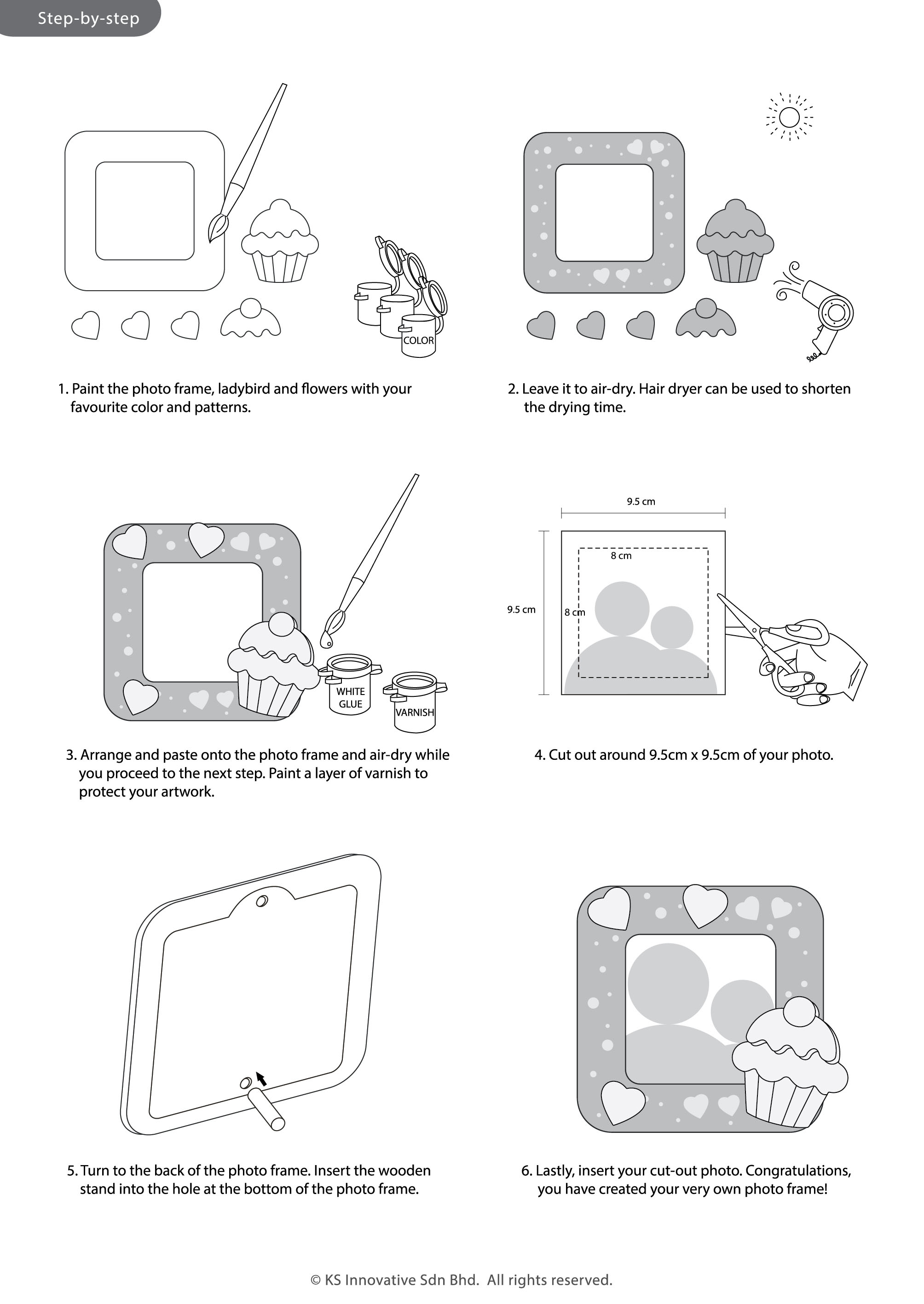 Learn to paint and assemble a Cupcake 3D photo frame! Beautifully laser drawn with accompanying hearts, kids will have fun arranging and gluing elements together. Easily paint patterns and colours after or follow the brilliant sample as displayed on the cover!