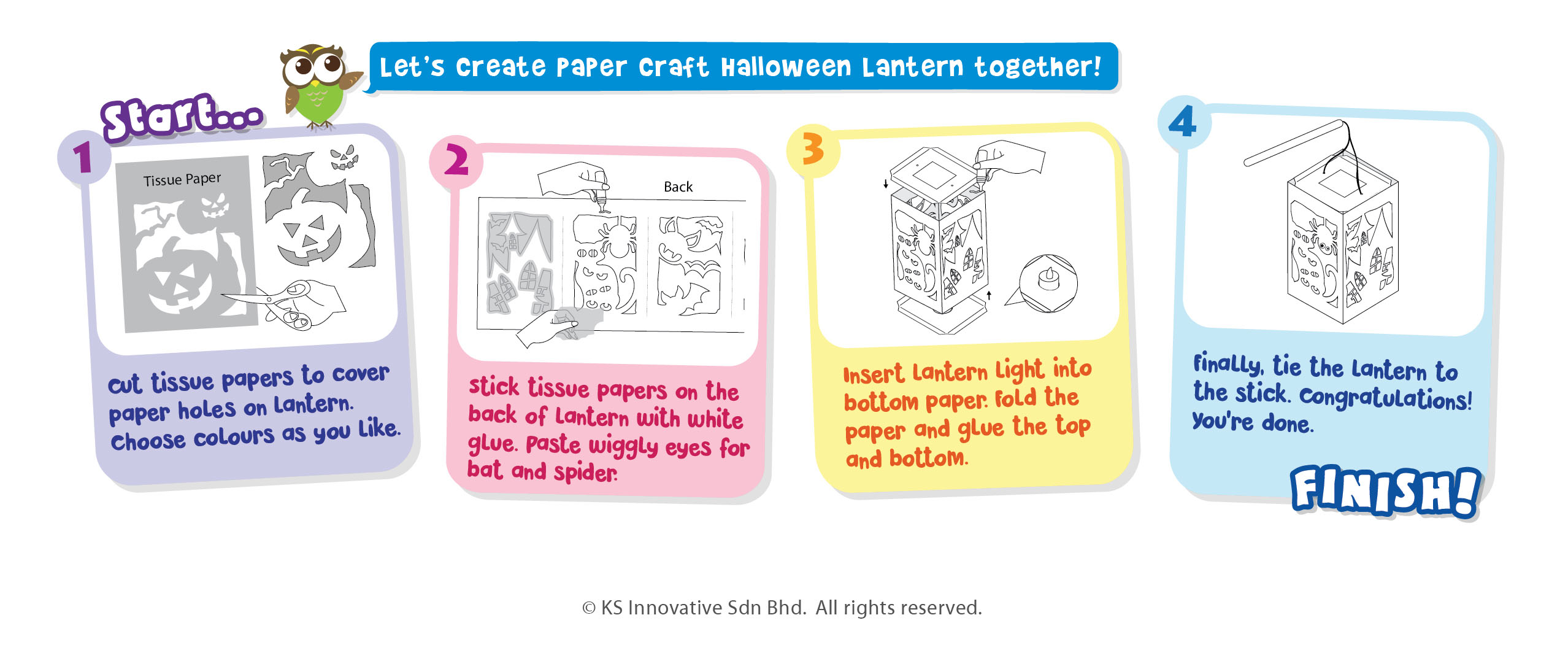 Create spook-tacular Halloween lanterns to decorate around the house or bring-it-along for trick-or-treating! Illuminate the lantern's pumpkins, bats, spider, cat and spooky castle with safe LED lights. The lantern has 4 sides and each displays different design and colour. This pack comes in 10 and perfect for multiple placements, switch the lights off for that festive look!