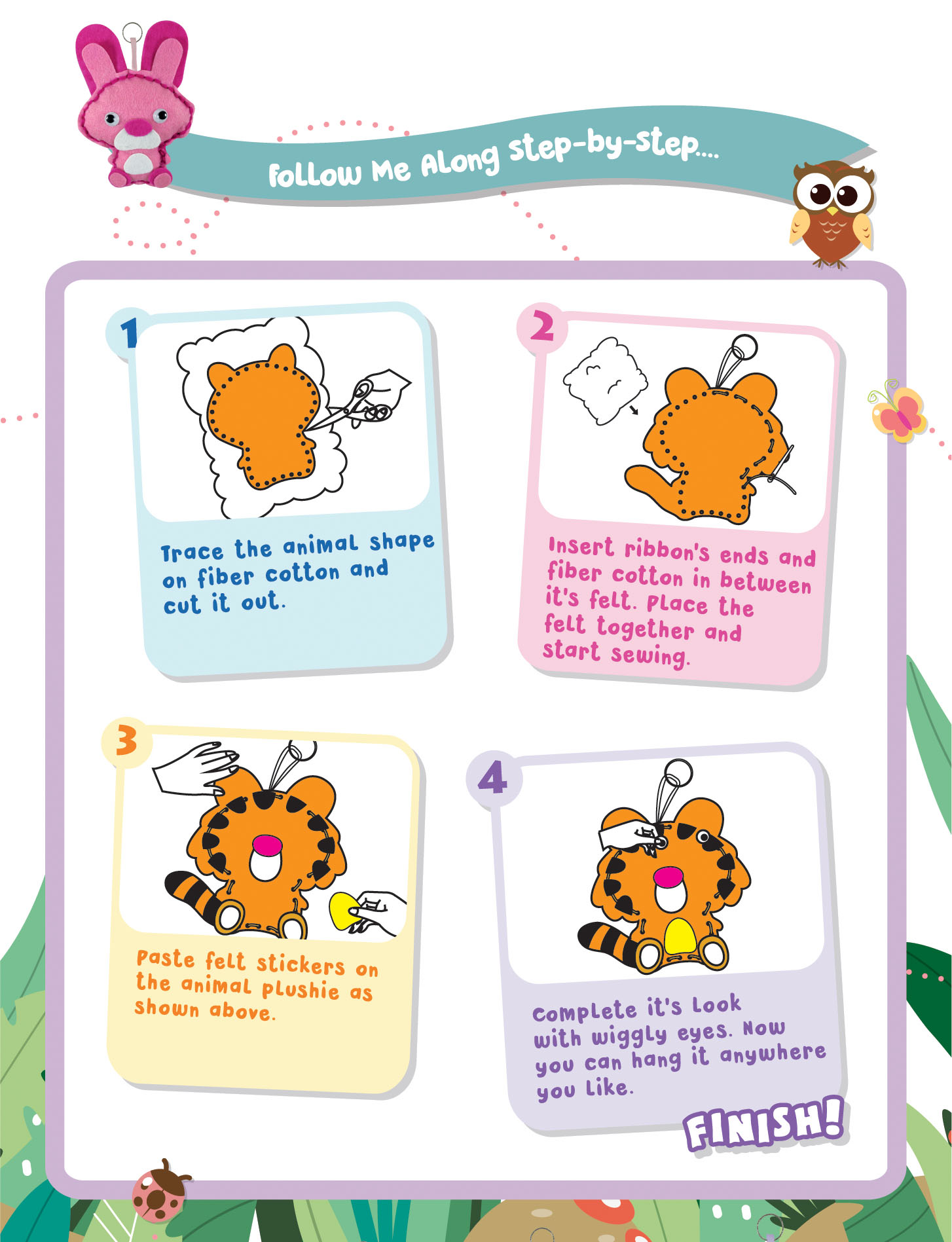 Pick from 5 adorable animals - Panda, Rabbit, Raccoon, Lion and Tiger and get crafty to sew an animal plushie! A rewarding result awaits - soft, colourful plushie toy that kids can bring everywhere. So let your little ones practice their sewing skills with these easy felt projects they are sure to love. Comes with everything ready!