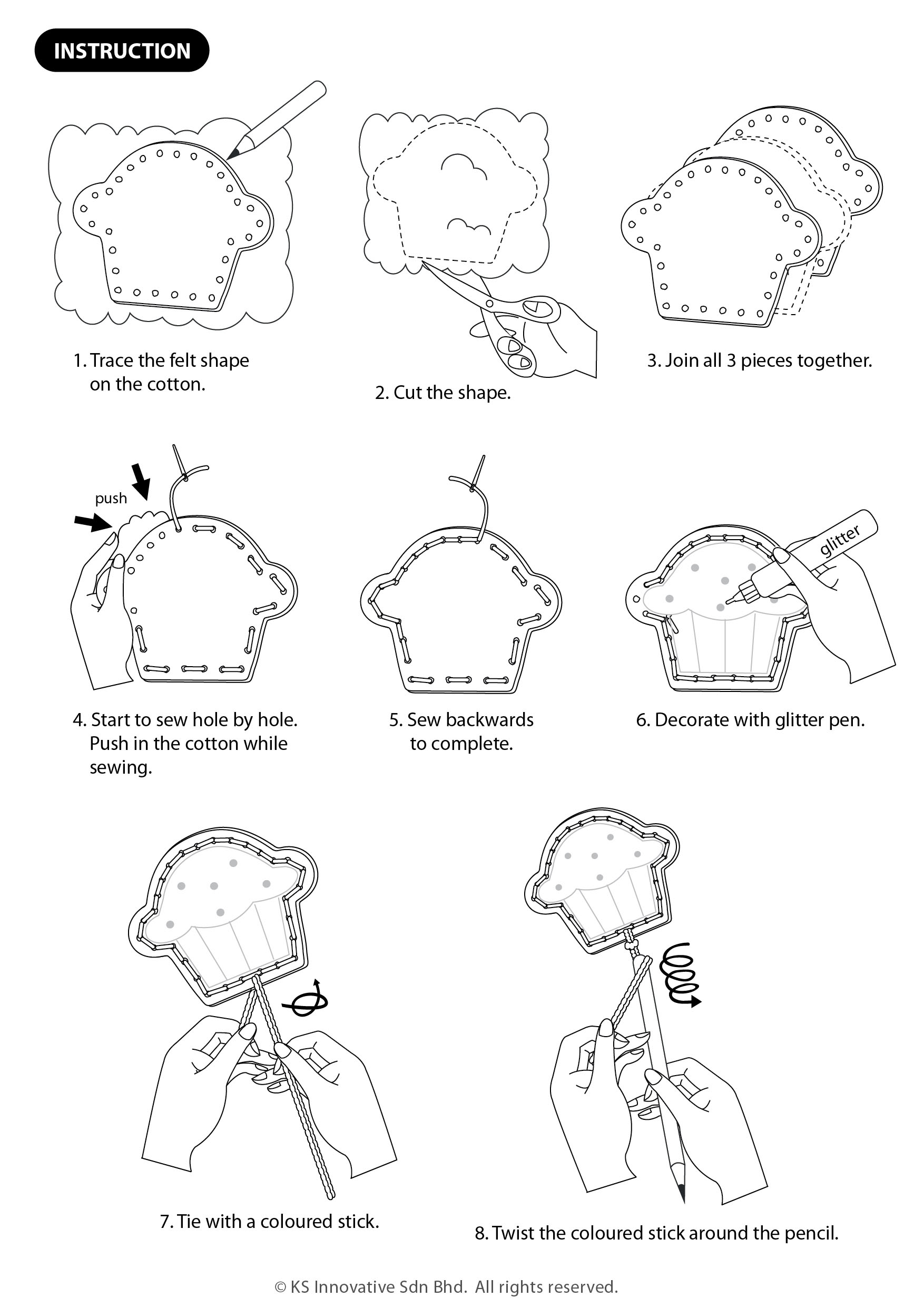 Top off boring pencils with DIY jiggly pencil toppers with felt sewing and glitter glue pens! Create 20 soft and puffy toppers - 2 of each Heart, Flower, Butterfly, Cupcake, Crown, Car, Spaceship, Star, Ribbon and Moustache. They will jiggle when you write and turns a tough class lesson fun and interesting! Great to present as a gift to your friends and teachers too.
