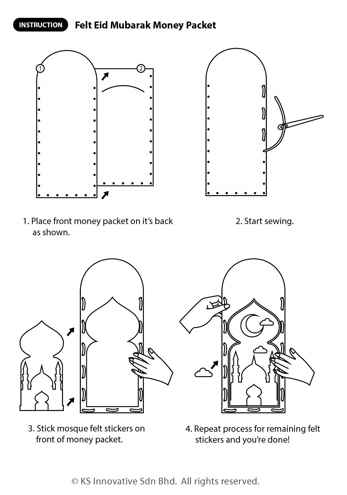 Give out your unique, do-it-yourself money packets during Hari Raya! Comes in 2 designs - Mosque and Ketupat, 5 each in a 10-pack activity kit. Made of felt materials, kids will have fun sewing the money packets and sticking cute decorations to complete the craft.