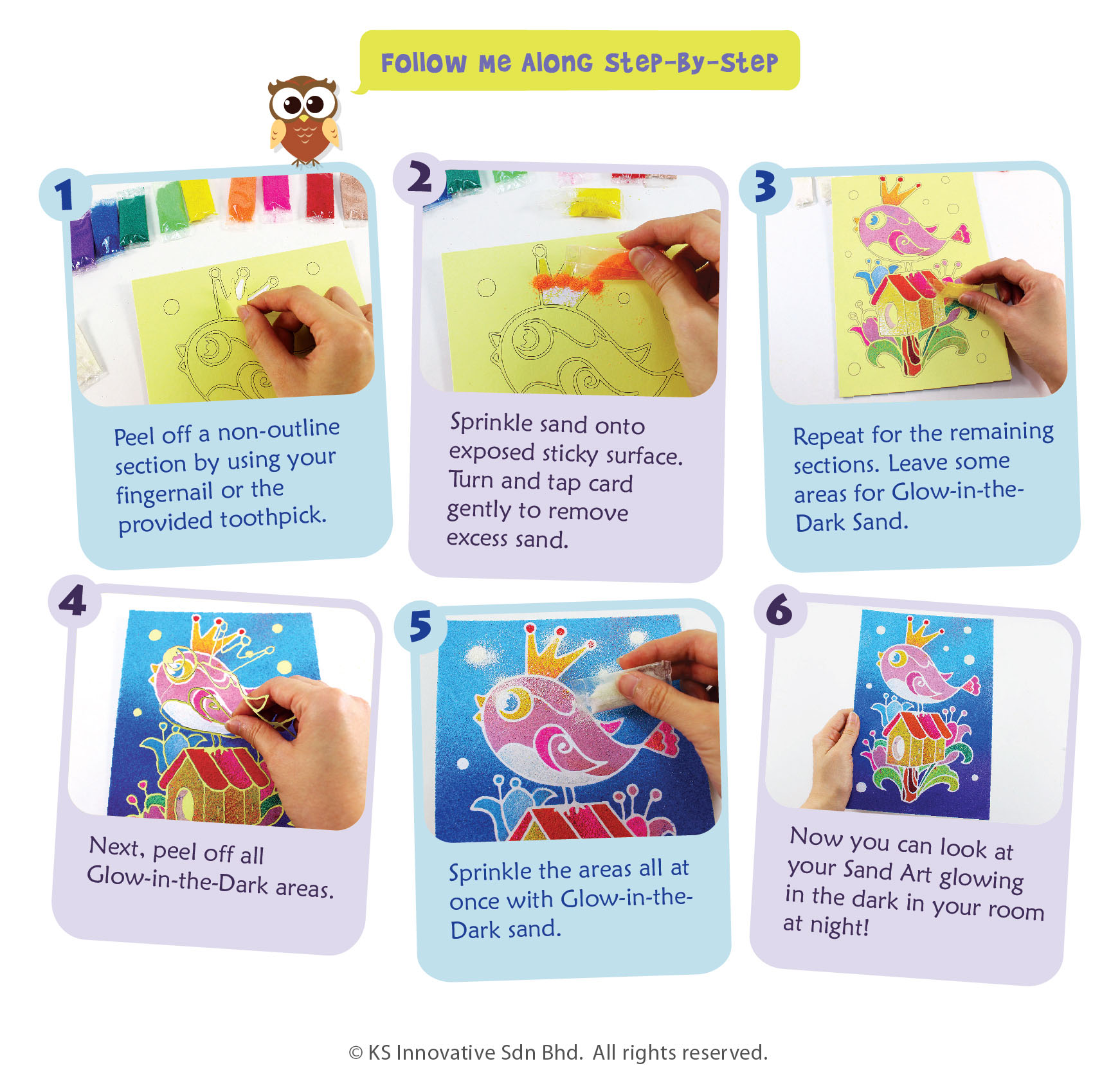 Peel and sprinkle beautiful Sand Art that glows in the dark at night!