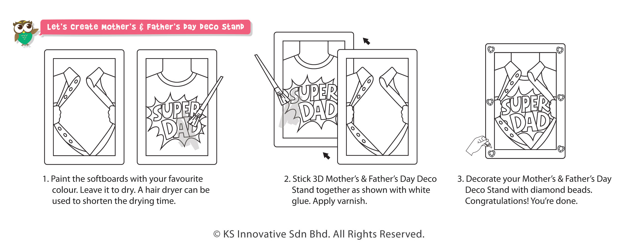 Surprise mom and dad with your creativity and paint with love for them with our wooden 3D Mother's And Father's Day deco stands! Comes in 2 great designs comprising of "Mother's Day Love" and "Father's Day Super Dad" stands. Your lovingly handpainted craft will warm your both your mom and dad's hearts and they look gorgeous displayed on table tops and work desks. The diamond beads also add a bling touch to the 3D effect!
