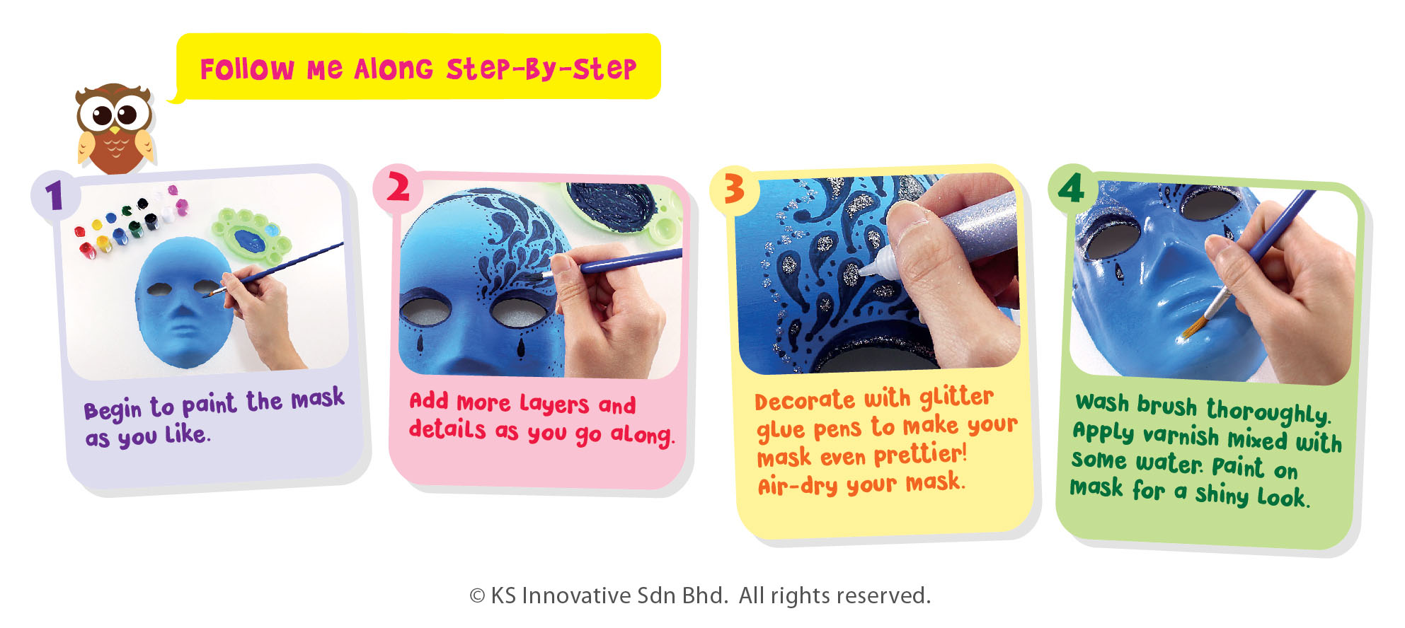 The paper mask material is sturdy and absorbs colour paint brilliantly. Add a layer of varnish for that extra shine and glossiness after drying! Great for: