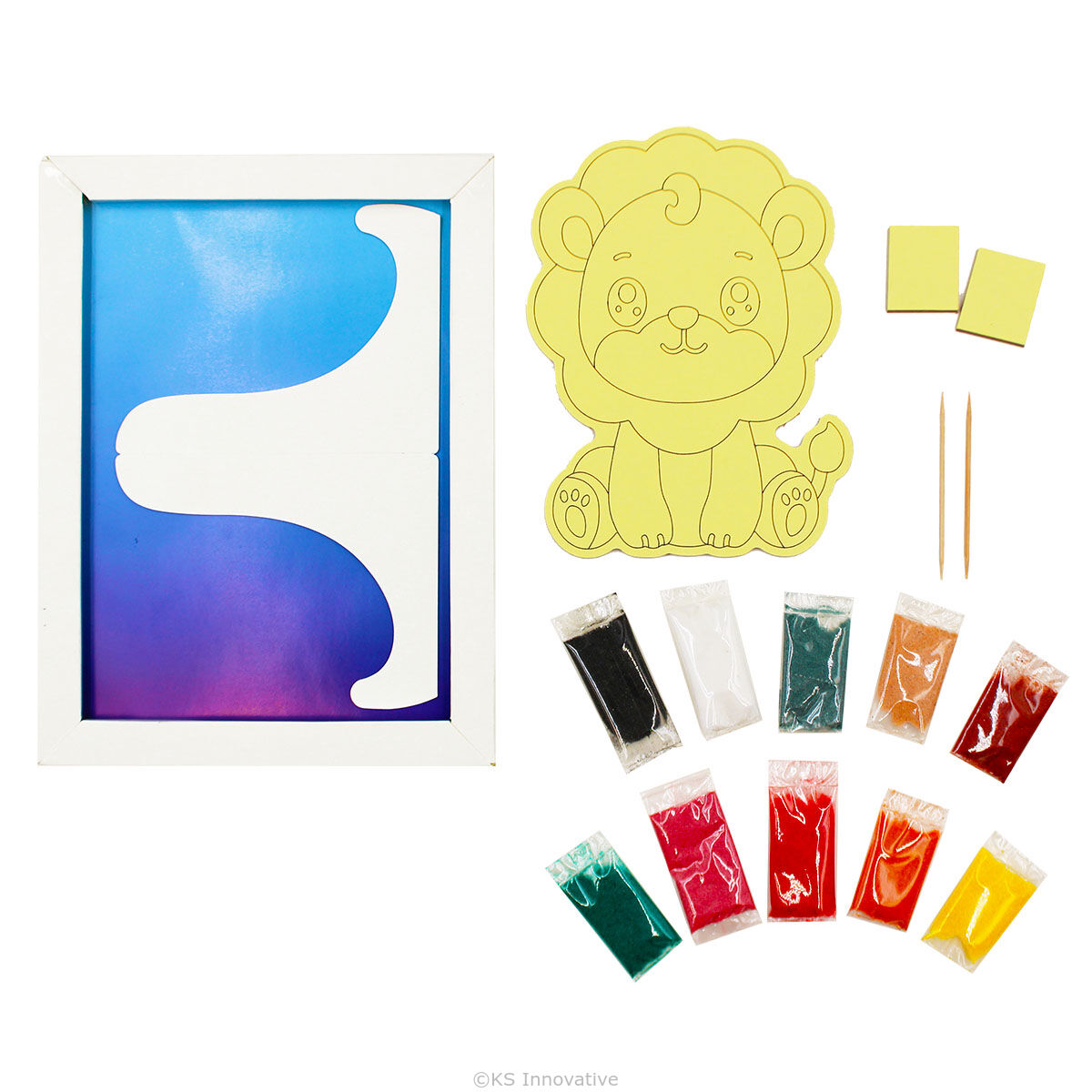 - Instant Wow Factor – Peel the protective layer and sprinkle vibrant sands – colours magically stick exactly where they should for a pro-looking masterpiece in minutes!