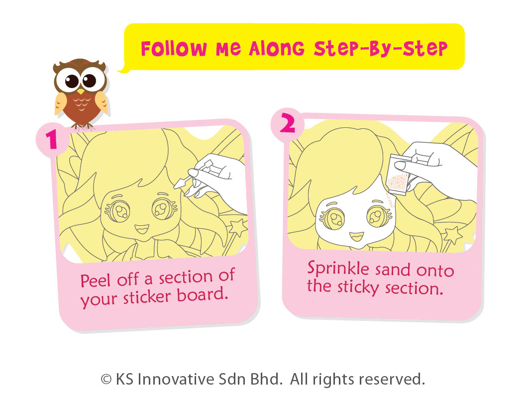 Design your Amber-Lily, The Magical Fairy Sand Art Deco Board with sparkling colored sand. Just peel and sprinkle, no scissors required! After you're done, proudly display your deco board anywhere as it comes with a stand.