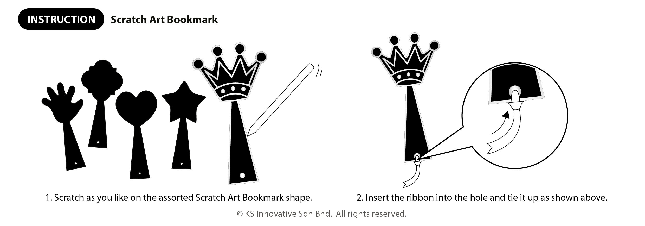 Our bookmarks makes for perfect kids' party favors and an overall awesome Scratch Art craft. Comes in 5 unique bookmark designs - Star, Crown, Love, Hand and Flower. The material behind this Scratch Art surface is a tough and sturdy artcard backing. Scratching the black surface with the provided scratch art stylus will reveal beautiful rainbow-like colours underneath!