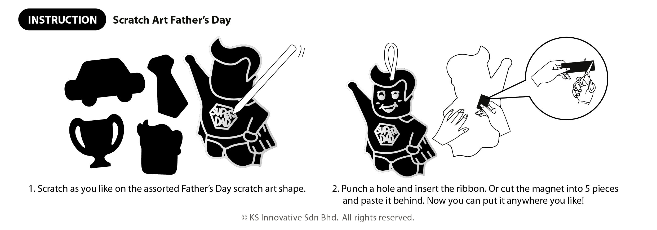 Make Dad's day extra-special with these cute Scratch Art Father's Day mementos. Comes in 5 different shapes to draw on - Super Dad, Dad's face, Dad's tie, Dad's car and Dad's trophy. The material behind this Scratch Art surface is a tough and sturdy artcard backing. Scratching the black surface with the provided scratch art stylus will reveal beautiful rainbow-like colours underneath! You can choose to punch a hole and hang it using ribbons or stick magnet strip behind as fridge magnets.