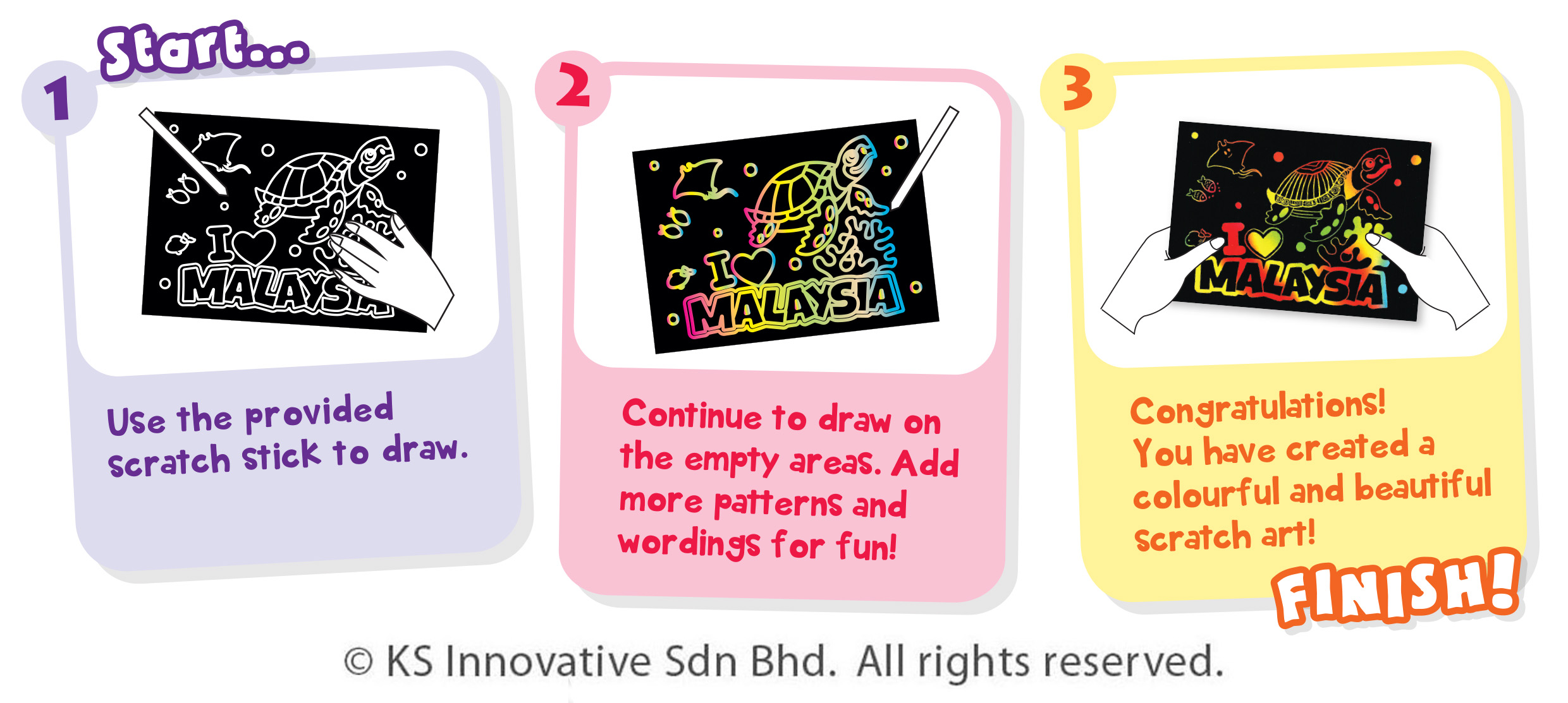 Get ready to scratch, sparkle, and shout "I Love Malaysia!" with this kit! This super-duper fun kit is your ticket to a colourful adventure, bursting with Malaysian pride and oodles of creative joy for kids, grown-ups, and everyone in between!