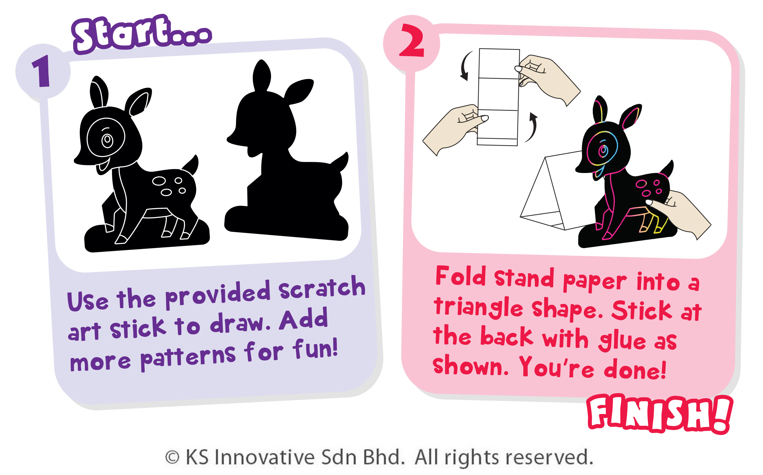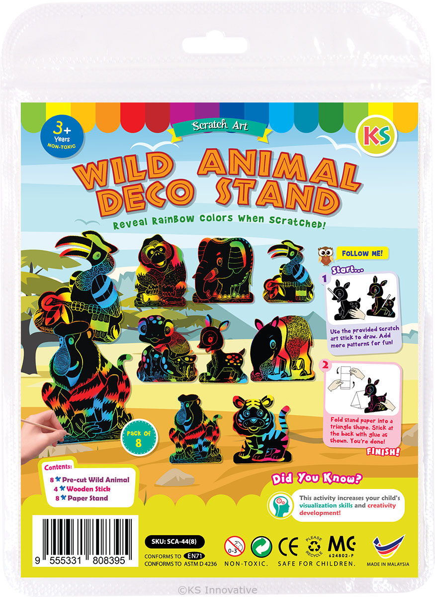 Scratch, reveal, stand, and let the wild rainbow jungle come alive in your room! Great for National Day/Merdeka party events and art and craft lessons!