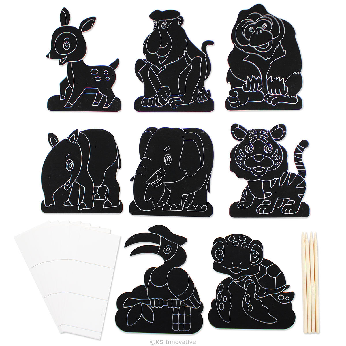 8 x Pre-cut Wild animal scratch art