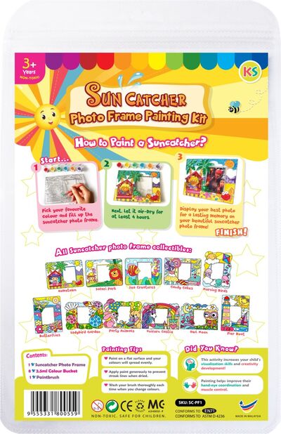 Another of our very popular craft, the suncatcher photo frame painting kit comes with a beautifully designed suncatcher photo frame stand and complete with colouring tools. Kids only have to mix and fill in colours that they like, creating beautiful masterpieces. Let the sun rays shine through the finished transparent craft! Fits a 2.5" x 7" photo. You may decorate atop your mantelpiece, study desk or wall rack!