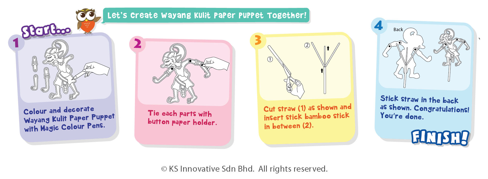 Dwell into the art of performing stories with traditional shadow puppets called Wayang Kulit! This "cinema in silhouette" makes the greatest storytellers and incites amazing imagination within each child and the kit comes in Laksamana, Putra Arjuna, King Rama or Warrior Bima. Choose your character, colour to your most creative pattern and design with the provided mini magic colour pens, build the puppet and viola, whisk rightaway to old and new storylines! Amazing play for the solo actor or expand it to shows for a group of inquisitive minds!