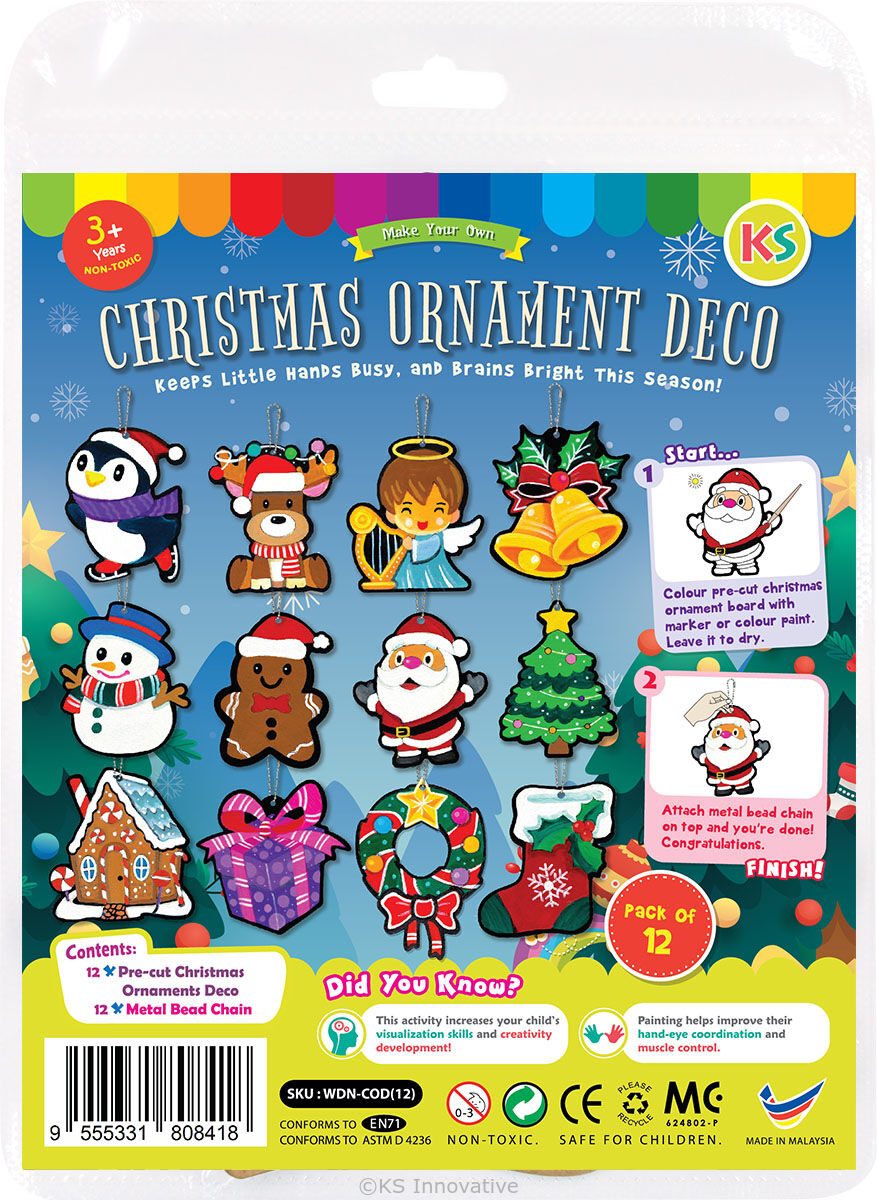 Ready to transform your tree or walls into a winter wonderland? Our 12-Piece Wooden Christmas Ornament Deco Kit is the jolliest way for kids to colour, create, and hang sparkling masterpieces that shine brighter than Rudolph’s nose!