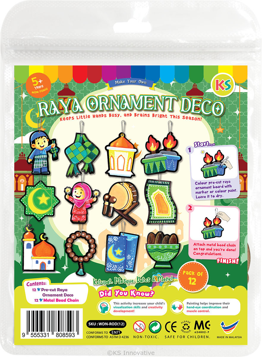 Ready to transform your home into a joyous Hari Raya celebration? Our 12-Piece Wooden Hari Raya Ornament Deco Kit is the awesome way for kids to colour, create, and hang sparkling masterpieces that shine brighter than the twinkling pelita lamps!